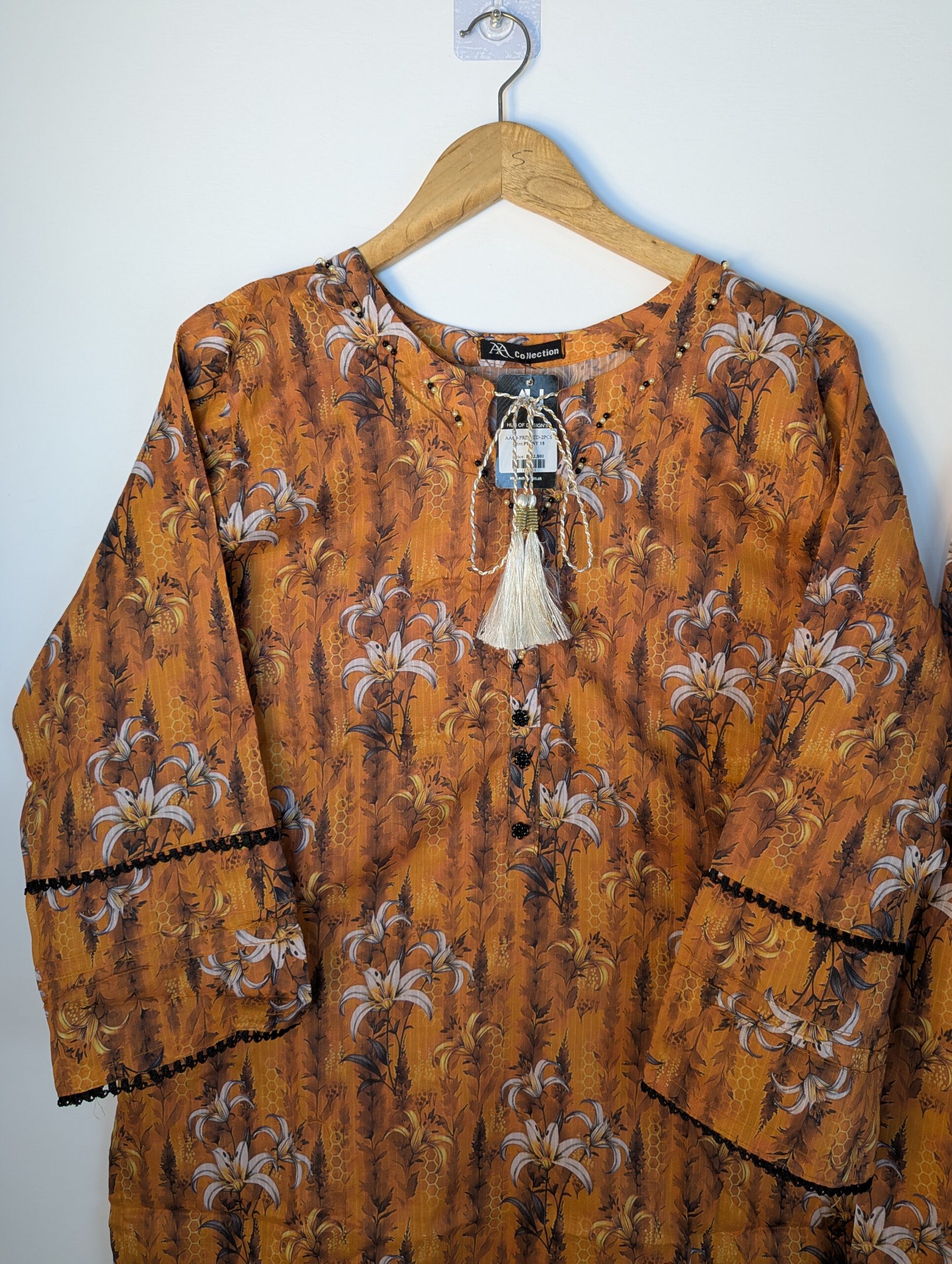 Step into timeless grace with this stunning dress, crafted on a soft lawn fabric , while the delicate embellishments on the neckline dori add a subtle touch of glam.