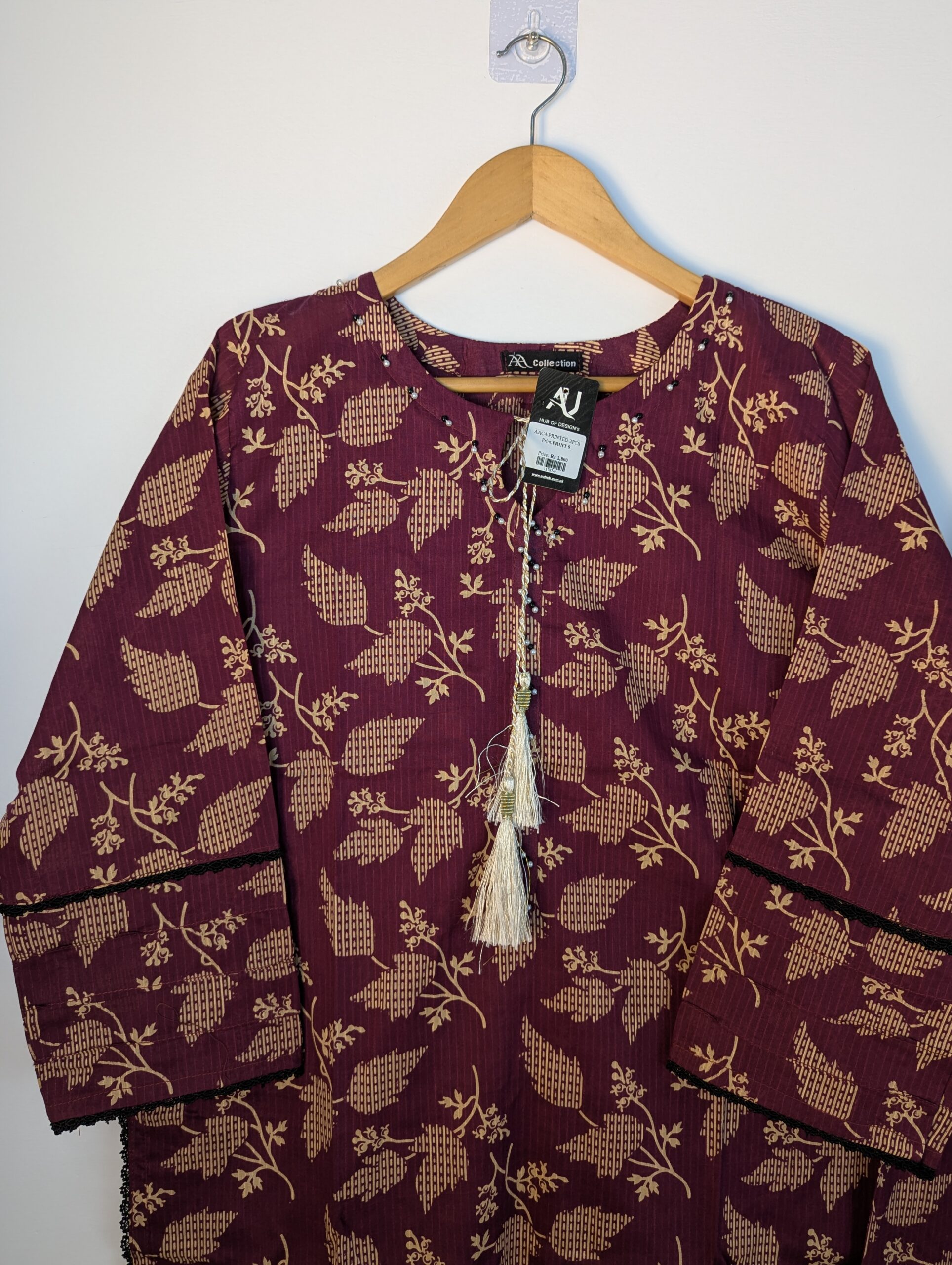 Step into timeless grace with this stunning dress, crafted on a soft lawn fabric , while the delicate embellishments on the neckline dori add a subtle touch of glam.