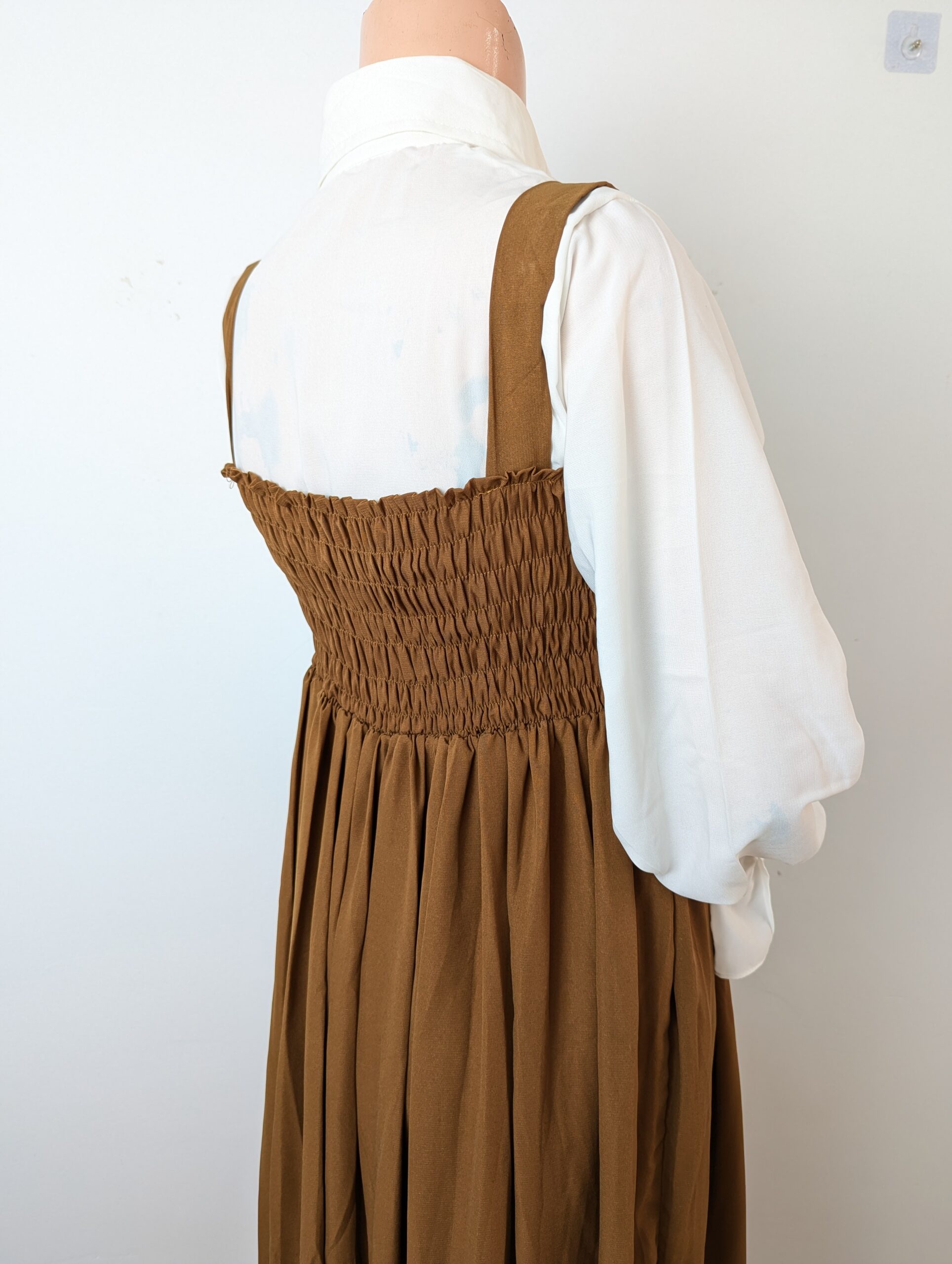 Discover timeless elegance with our stunning brown dress paired with a classic white shirt, expertly showcased on a mannequin. This versatile ensemble is perfect for any occasion, effortlessly transitioning from day to night. The rich brown hue flatters all skin tones, while the crisp white shirt adds a touch of sophistication. Crafted from high-quality materials, this outfit ensures comfort without compromising style. Elevate your wardrobe with this chic combination that promises to make a lasting impression.